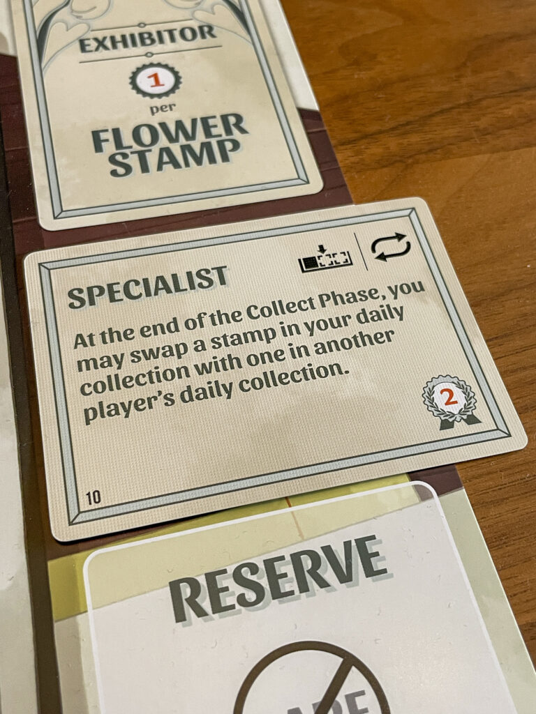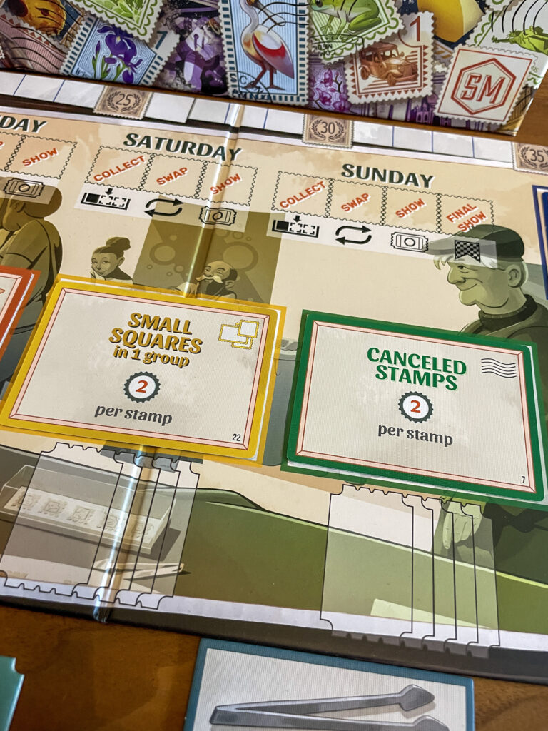 At the end of three full rounds, the convention culminates in the Final Show. Players tally points for their forever stamps, the total values of the stamps in their albums, any specialists they’ve recruited, and the special Finale contest card.