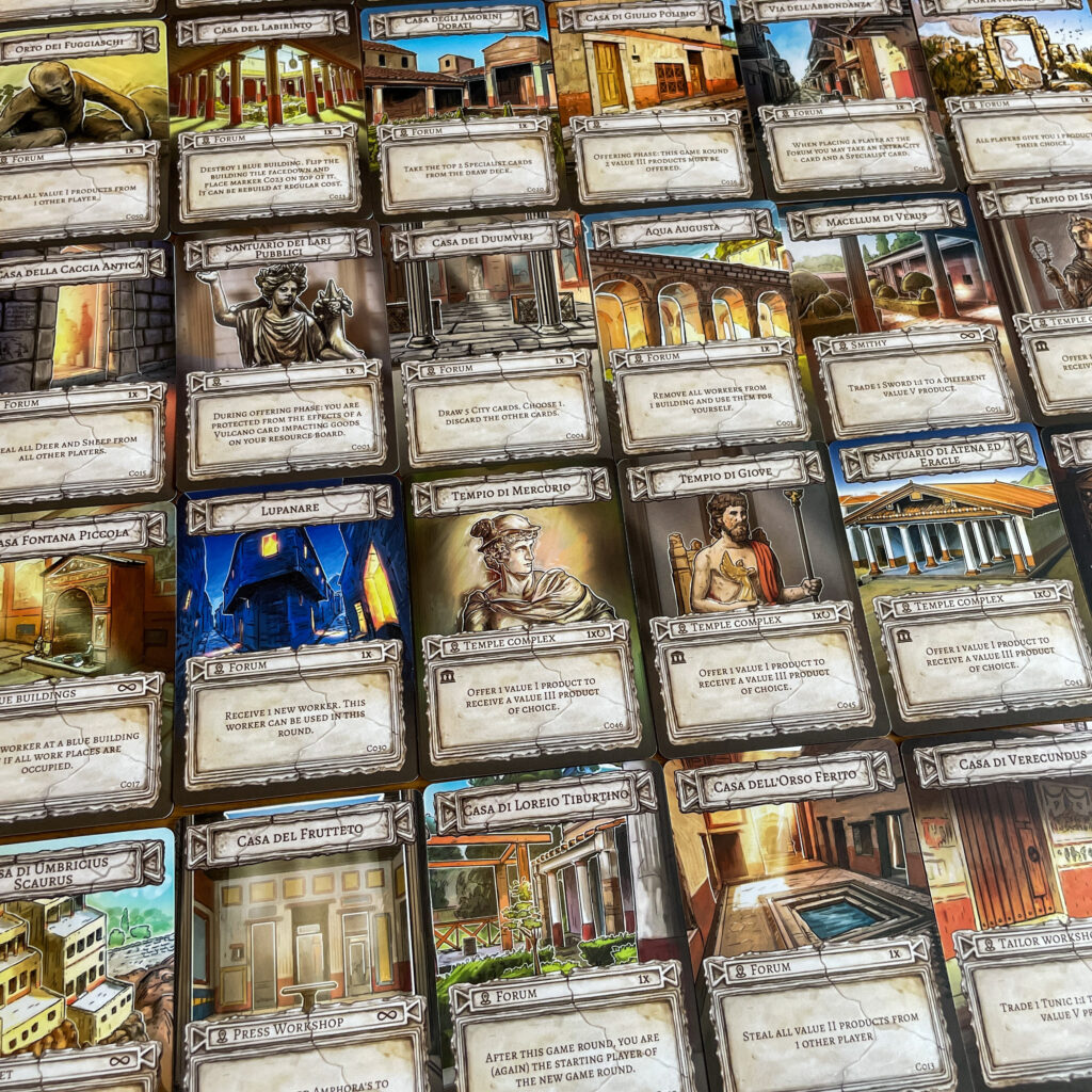 Toch zijn er ook punten die nog verbeterd kunnen worden. Zo vond ik dat sommige regels, vooral rond het bouwen van het Foro di Pompeii, niet altijd even duidelijk zijn. Het is niet altijd evident wanneer precies dit cruciale gebouw gebouwd moet worden, terwijl het bouwen ervan een belangrijk keerpunt in het spel markeert. Dit kan soms voor verwarring zorgen en het speltempo beïnvloeden. Hier zou een duidelijkere en strakkere formulering van de regels zeker bijdragen aan een soepelere spelbeleving.