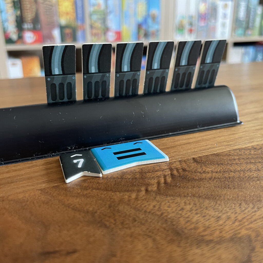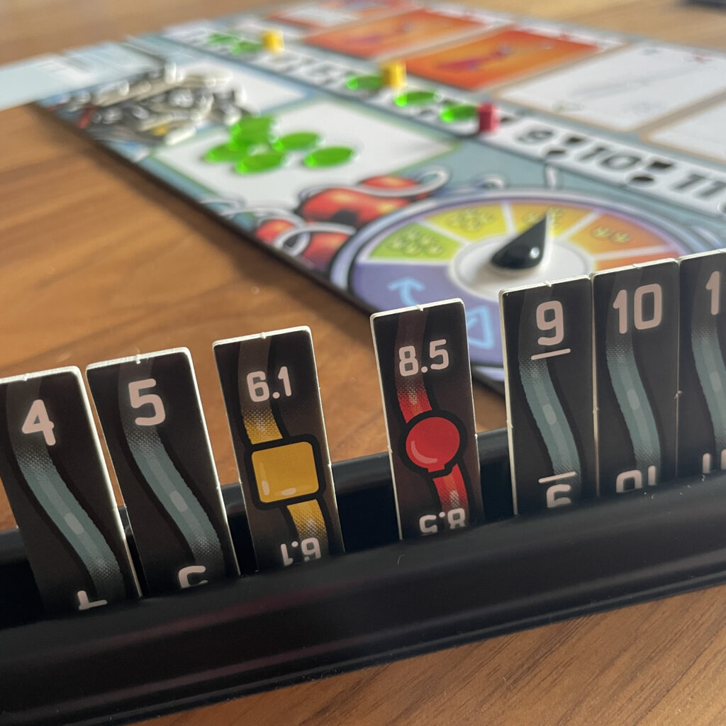 Hebben jullie van alle 4 de draden van een getal succesvol doorgeknipt, dan mag je een groen fiche op het getal plaatsen. Daarmee is goed zichtbaar welk getal al uit het spel is.