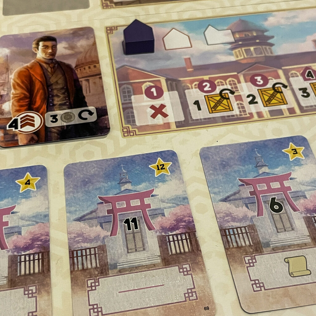 Yokohama Duel is a polished and thoughtfully designed game that successfully translates the spirit of the original into a dedicated two-player experience. The production quality is excellent: the graphic design is clean, readable, and elegant, and the visual style fits the Meiji-era theme perfectly without overwhelming the table. Everything feels deliberate and carefully crafted, from the iconography to the board layout.